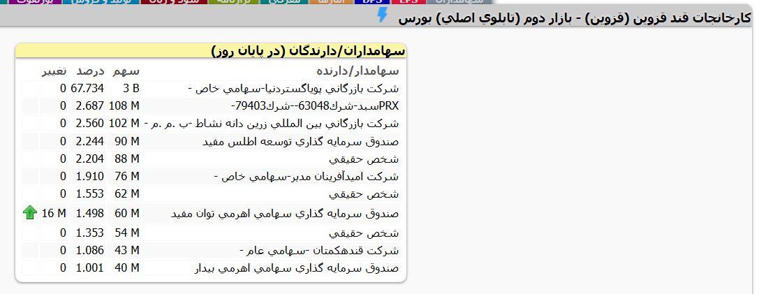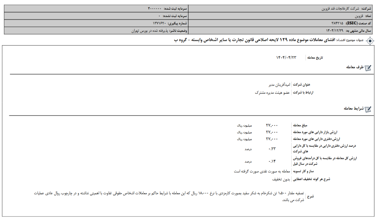 خریدار و فروشنده قند قزوین در این معامله بلوکی حقوقی بودند. قیمت هر سهم 541 تومان بود.