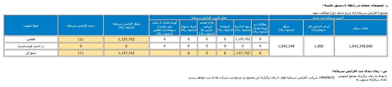 دعوت به مجمع افزایش سرمایه 111 درصدی از انباشته در تاريخ 040222