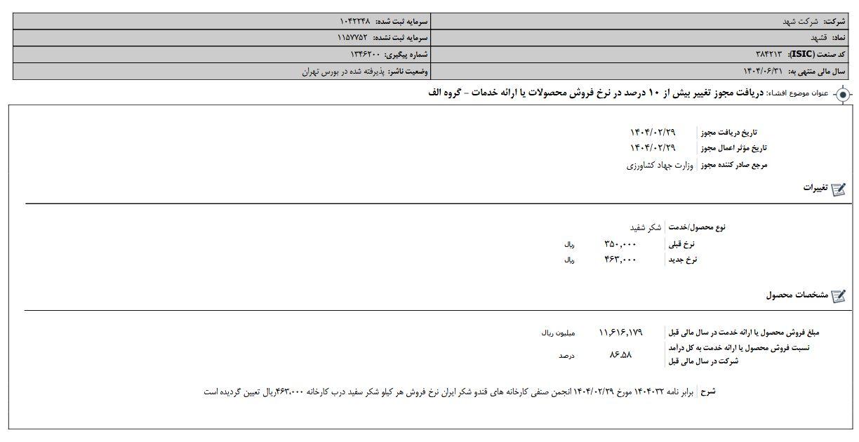 #قندی #شکر #گزارش_ماهانه #شهریور1404