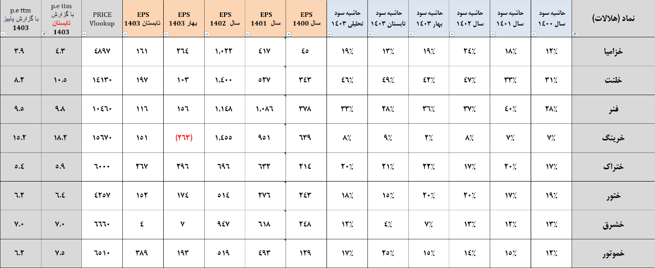 از میان 28 شرکت این صنعت، تنها 8 شرکت رشد سودخالص داشته اند که #خموتور با رشد 100% بالاترین نرخ را ثبت کرده است. همچنین فقط شرکتهای #خموتور، #ختراک و #ختور و #خبنیان توانسته اند حاشیه سود خالص را نسبت به دوره قبل 2 تا 3 درصد بهبود ببخشند که از شرکتها، خموتور، ختراک و ختور رشد سودآوری بالا و نسبت قیمت به سود پایین دارند.