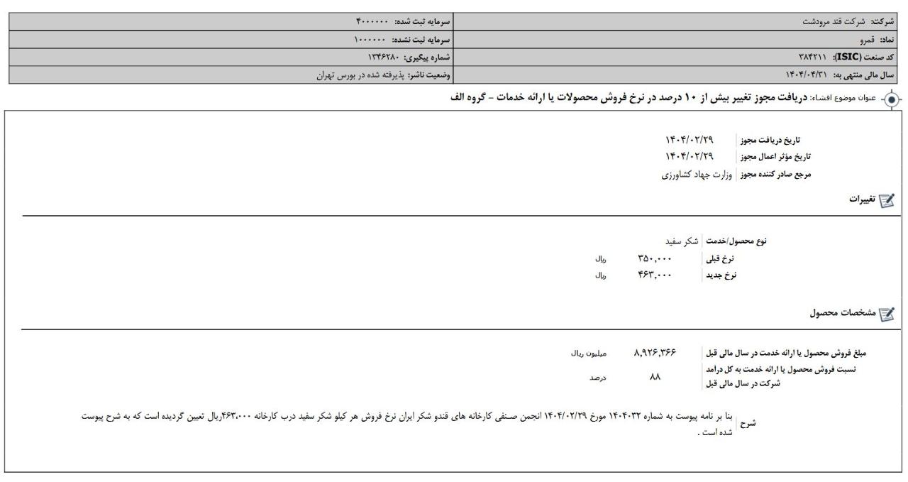 ●#قشیر درآمد[1,376م.ت]رشد94%