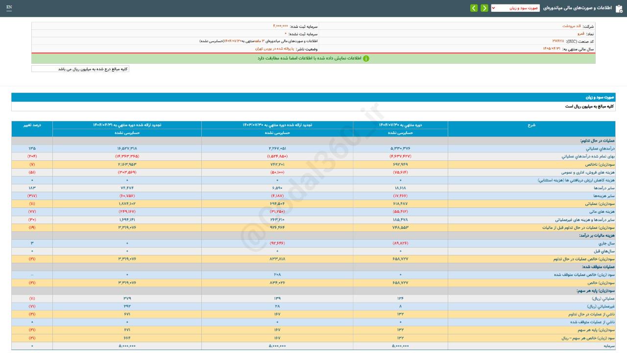 ●#قمرو درآمد[1,408م.ت]رشد180%
