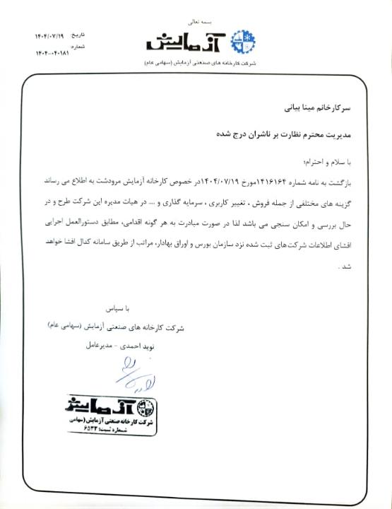 در پاسخ به نامه ی فرابورس در خصوص نوسان قیمت سهام