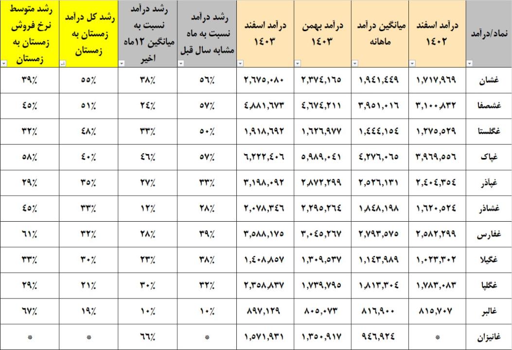 درآمد کل گروه در مهرماه سال قبل 1.64همت، در مهرماه سال جاری 1.9همت و به صورت میانگین در 12ماه اخیر 1.79همت بوده است.