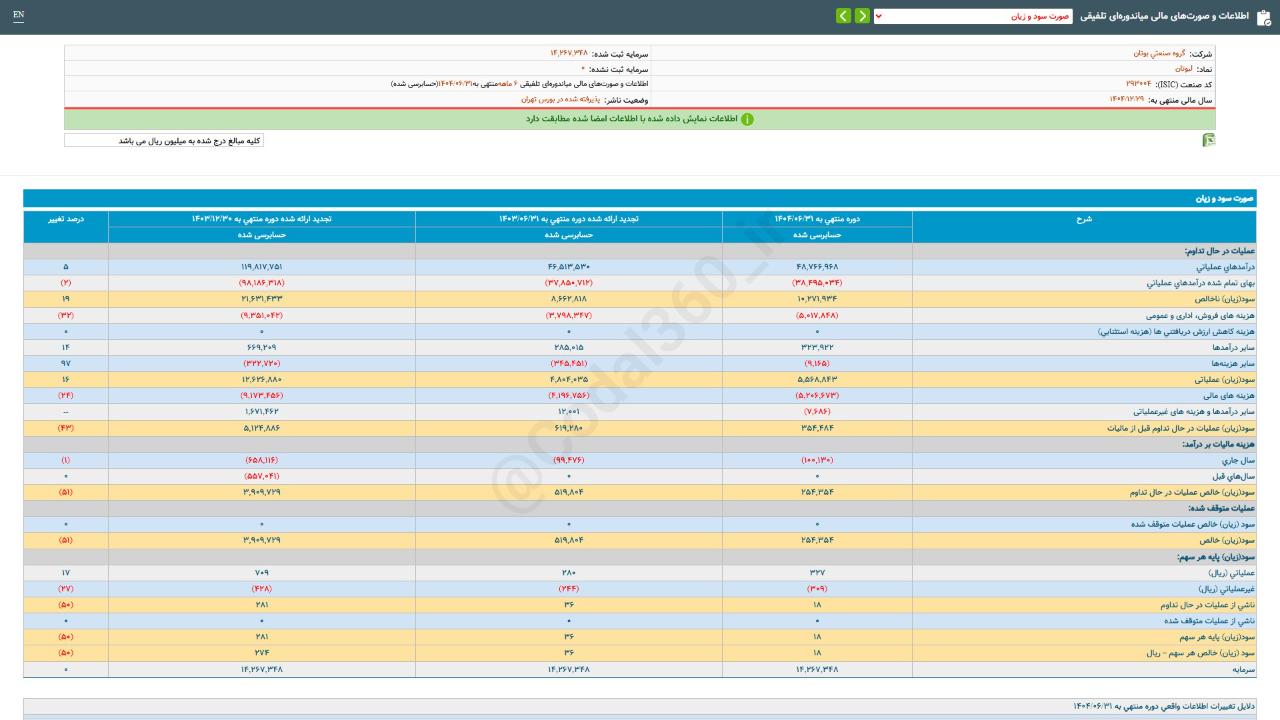 اطلاعات و #صورتهای_مالی_میاندورهای تلفیقی #دوره_6_ماهه منتهی به 14040631 حسابرسی شده شرکت #گروه_صنعتی_بوتان