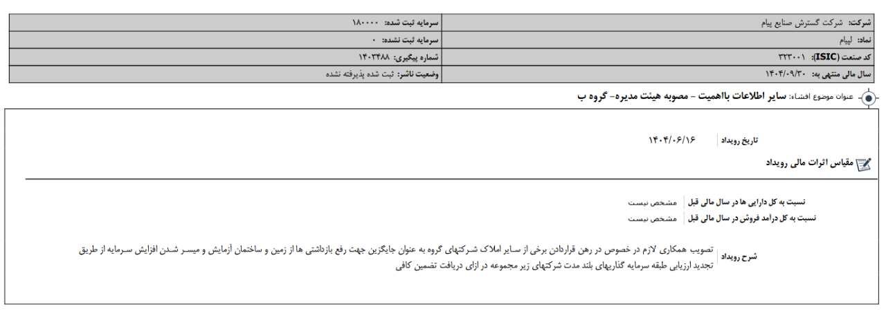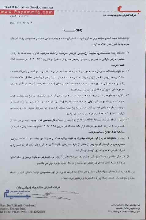 به گزارش پول نیوز ، شرکت گسترش صنایع پیام که با نماد «لپیام» برای سهامداران شناخته می شود، عمده سهامش تحت مالکیت شرکت «آزمایش» لازما است. این سهام مدتهاست که با چالشهای عجیب و غیرمنتظرهای در معاملات خود روبرو شده است. در حالی که افزایش سرمایه بیسابقه ۲۴ هزار درصدی این شرکت در تاریخ ۲۶ اسفند ۱۴۰۳ اعلام و درسامانه کدال بورس منتشر شد، اما بهجای ایجاد فرصت رشد و شکوفایی، شاهد صف فروش سنگینی بر این نماد بودیم که درآن زمان، صدای اعتراض سهامداران خرد خود را بلند کرد.