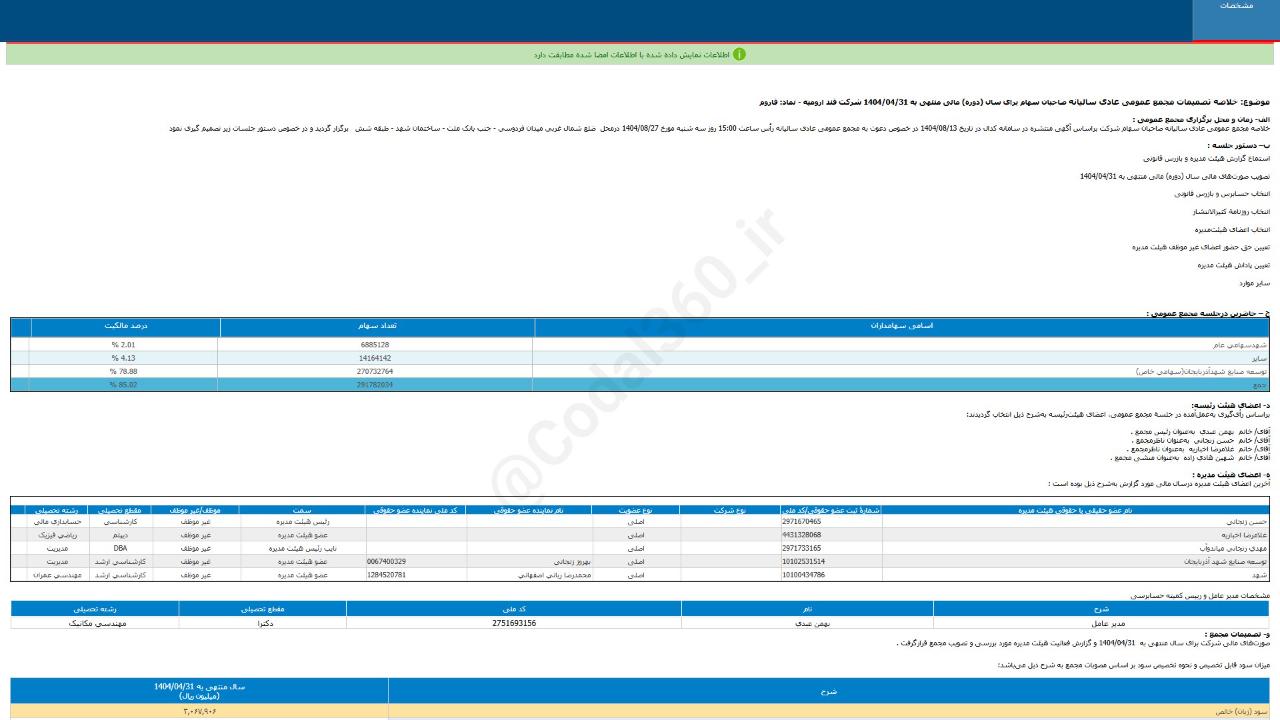 ✅طبق اعلام شرکت، سازمان امور مالیاتی استان بوشهر تنها مرجعی است که در سطح کشور اختیار صدور بازداشتنامه مستقیم از حساب شرکتها را دارد. این بازداشتنامه در اردیبهشت ماه بر حسابهای شرکت اعمال شد که موضوع در حال پیگیری بوده و در مسیر حلوفصل قرار دارد.