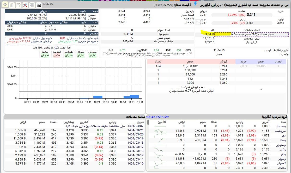 #مدیریت بعد مدت ها یک حجم میلیونی معمولی خورد البته در بازاری که 99 درصد سهام صف فروش بودند. دو تا حقوقی 800 هزار تا این سهم و فروختند جای تعجب دارد!