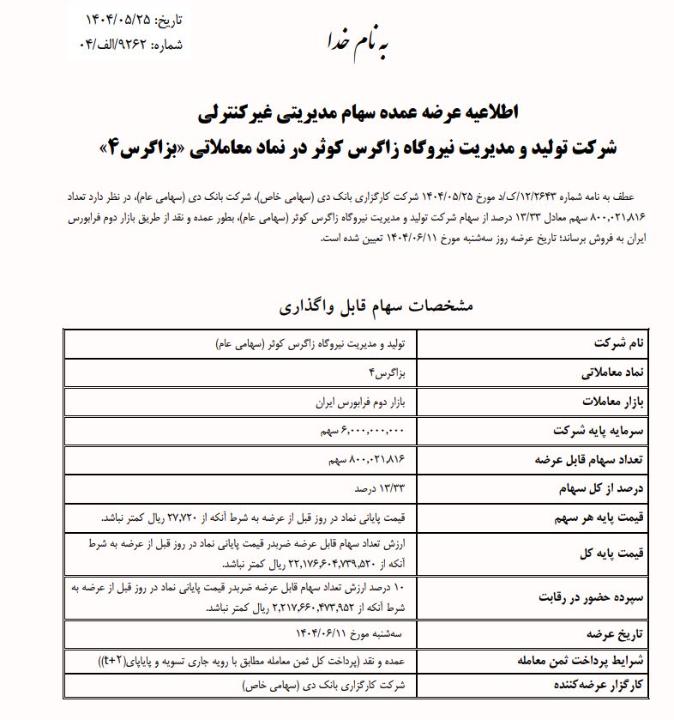#اطلاعیه_عرضه_عمده #غیرکنترلی #بپردیس #کارگزاری_بانک_مسکن #عرضه_عمده #نقد #بپردیس4 #مدیریتی_غیرکنترلی #مدیریتی #آتیه_سپهر_قرن