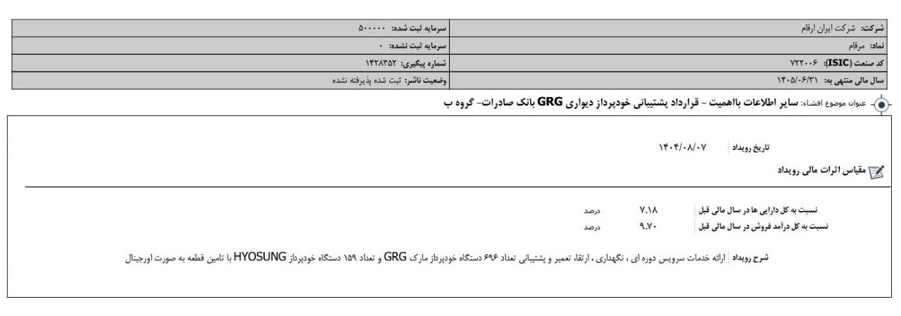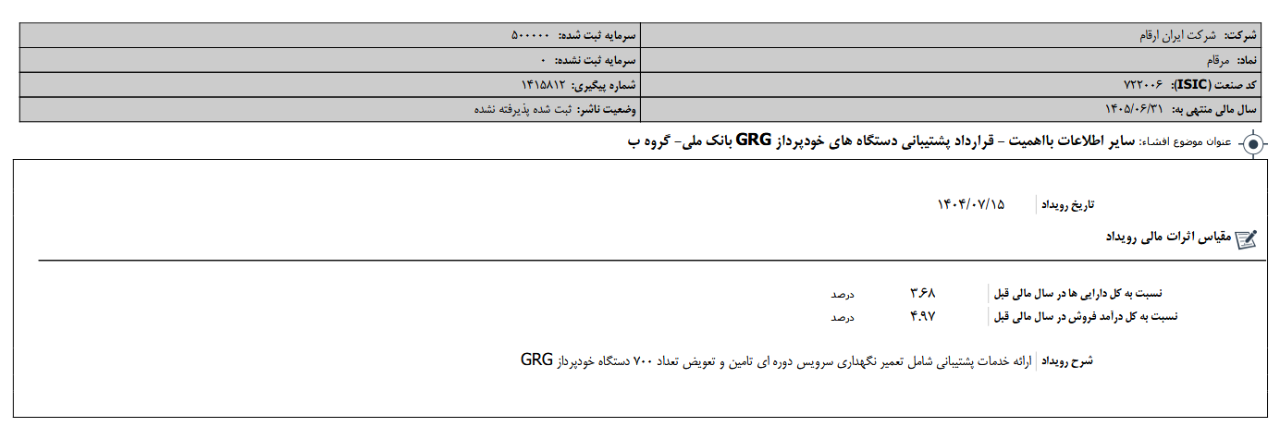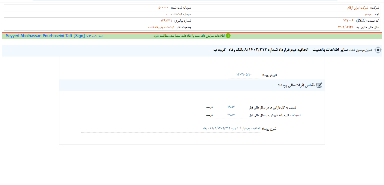 ▪️ «مرقام» با سرمایه ثبت شده 500,000 میلیون ریال طی عملکرد 12 ماهه منتهی به 14040631 مبلغ 462,074 میلیون ریال سود شناسایی کرده است.