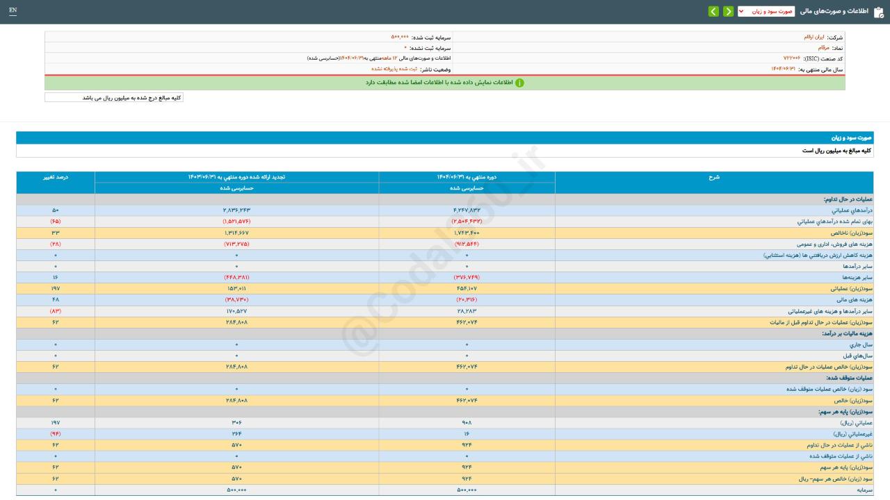 #مرقام #صورتهای_مالی سال مالی منتهی به 14040631 حسابرسی شده شرکت