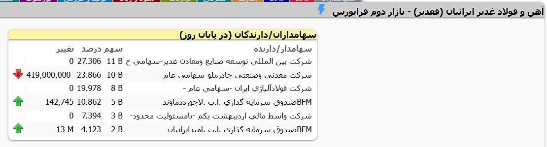 فروشنده #فغدیر در معامله بلوکی روز 15 مردادماه شركت معدني وصنعتي چادرملو بود. نکته جالب در اینه که یکی میلیون سهم کمتر از یک درصد سهام شرکت معامله شد تا خریدار اسمش توی لیست بالای یک درصد نیاد!!