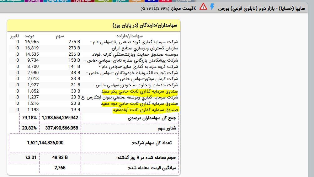 خریدار 6.511 درصد این سهم صندوق سرمايه گذاري ثابت آوندمفيد بود
