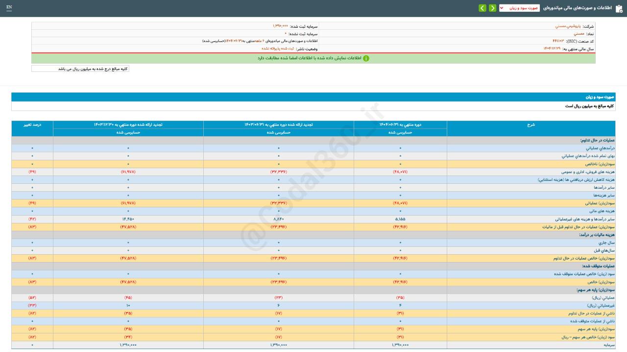 اطلاعات و #صورتهای_مالی_میاندورهای #دوره_6_ماهه منتهی به 14040631 حسابرسی شده شرکت #پتروشیمی_ممسنی
