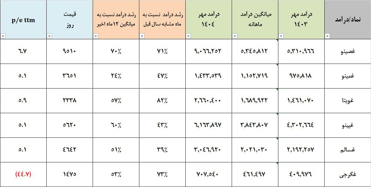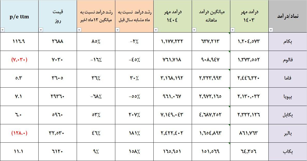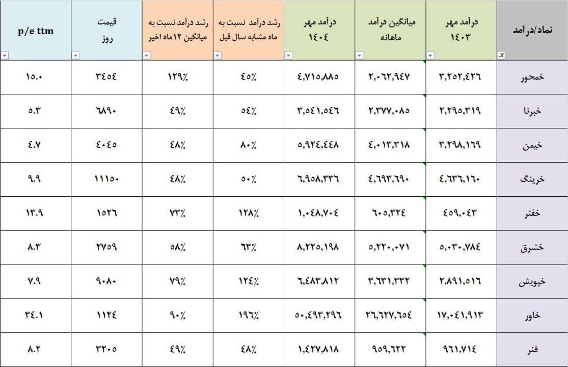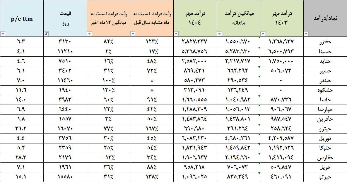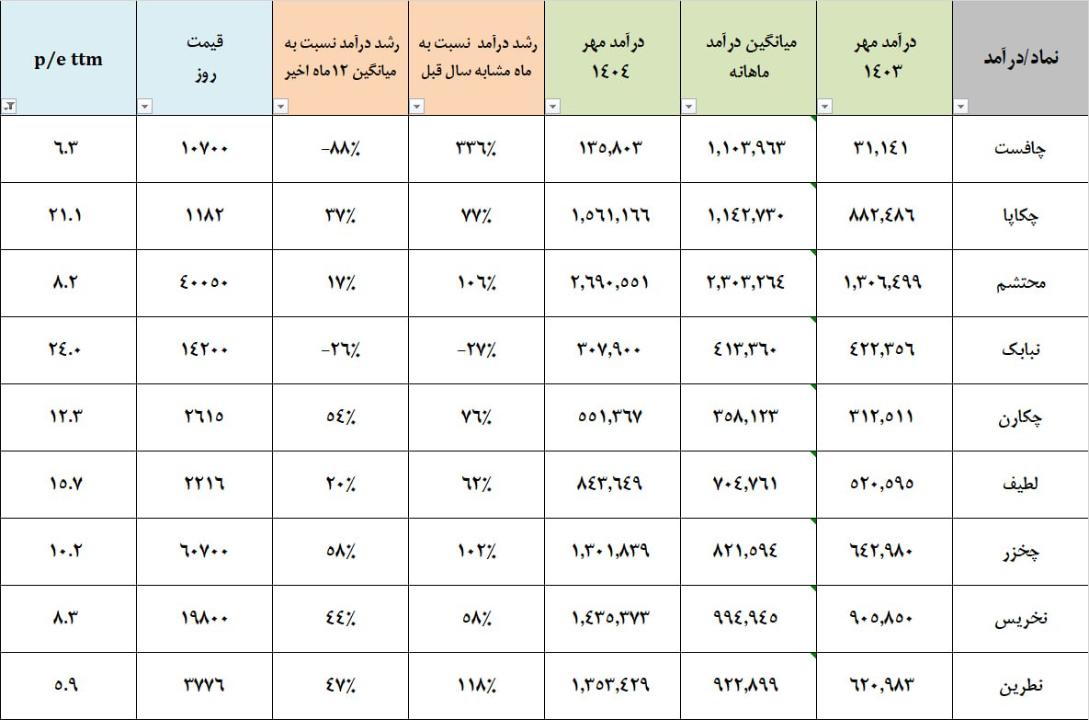 تنوع فعالیت در این دسته بندی دیده می شود. چافست در صنعت چاپ، محتشم در فرش، چخزر در چوب و نطرین در نساجی عملکرد خوبی طی مهرماه داشتند لذا گزینه تحلیل جامع هستند با این حال باید به ریسک های صنعت و تلاطم هایی که نسبت به شرکت ها و صنایع بزرگ دارند نیز دقت شود.