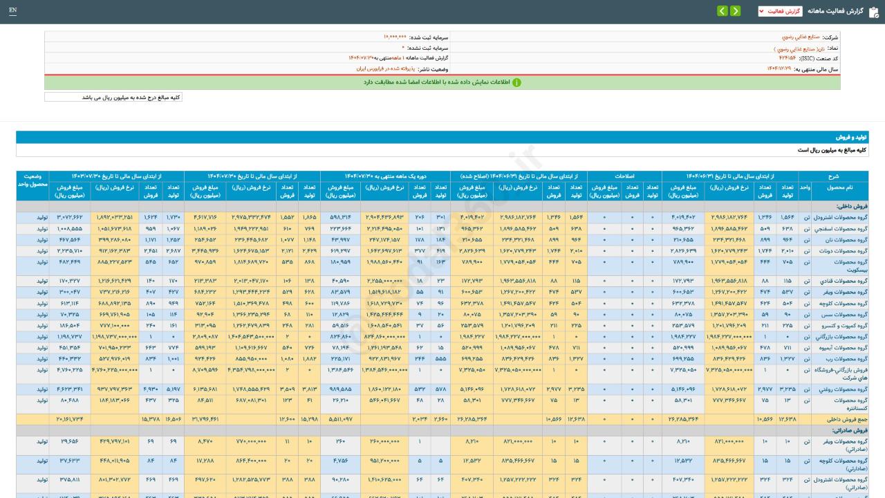 #گزارش_فعالیت_ماهانه #دوره_1_ماهه منتهی به 14040730 شرکت #صنایع_غذایی_رضوی