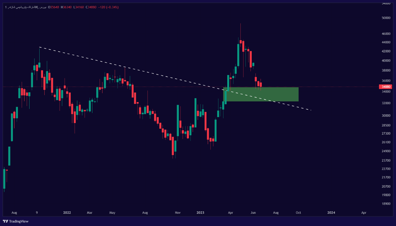یک کندل با بدنه اش بالای این سطح بسته بشه و هدف اول این موج 3200 تومن و بعدی که سقف مستطیل ماهانه است، 3600 تومنه.