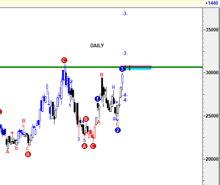 #روزانه همانطور که در تصویر میشه دید، نزدیک سطح مقاومت 3070 تومنی هستیم و برای تایید موج 3 روزانه، باید