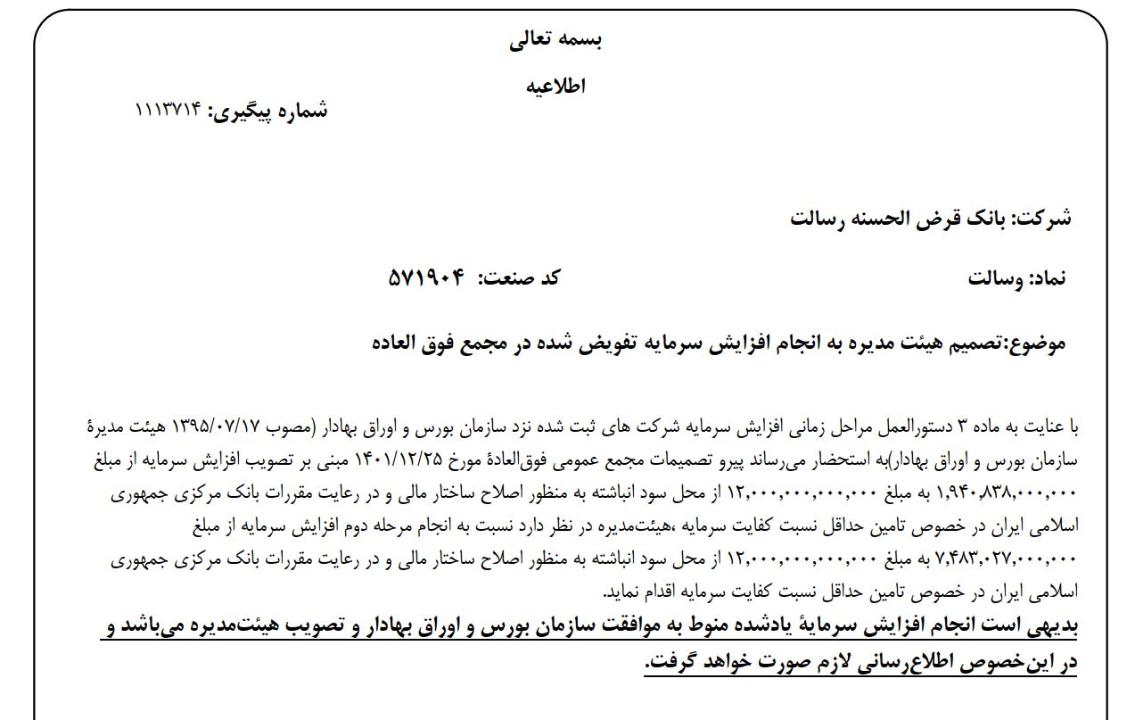 تصمیم #هیئت مدیره به انجام مرحله ی دوم #افزایش_سرمایه تفویض شده در مجمع فوق العاده #وسالت