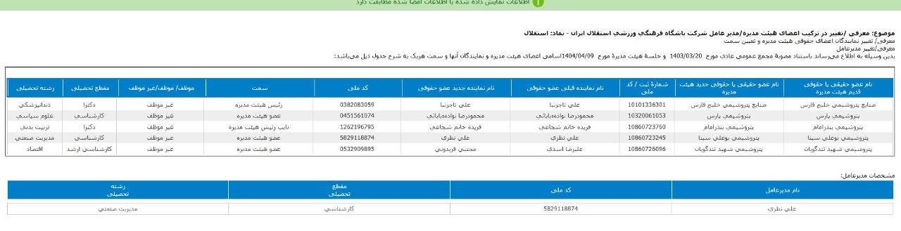 اختیار انتخاب اعضای هیات مدیره بر عهده ارکان ذی صلاح شرکت سرمایهگذاری تامین اجتماعی شستا است.