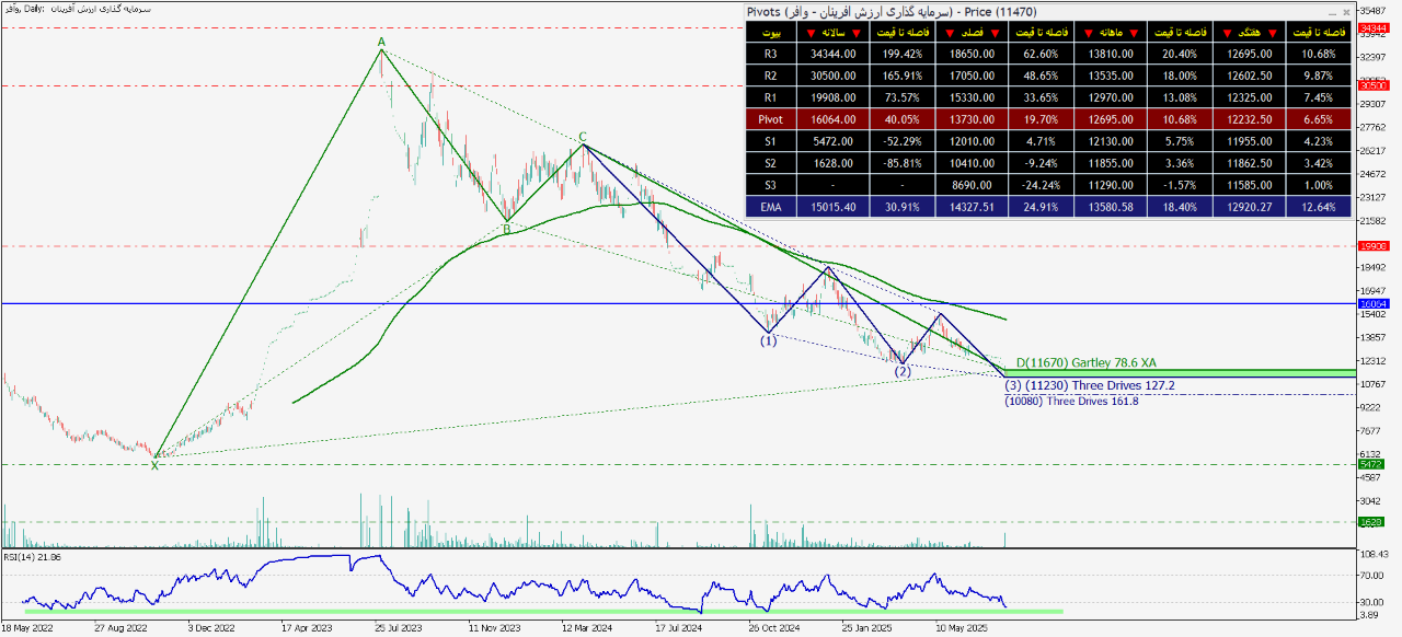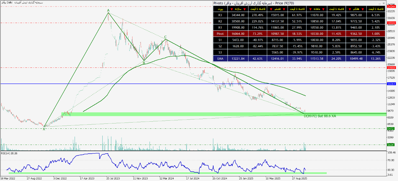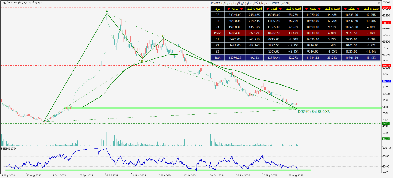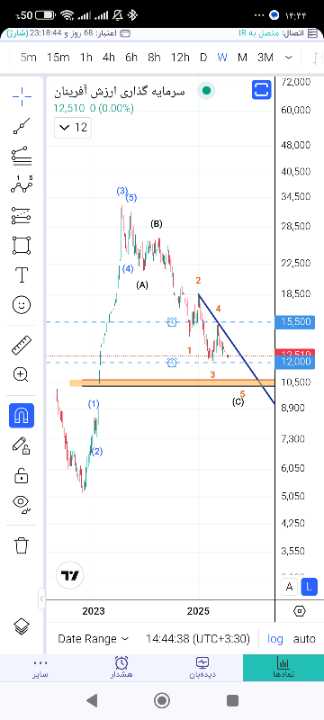 یعنی محدوده قیمتی ۱۰۳۲۹ الی ۱۰۶۸۹ میتواند قیمت رو صعودی کند. ولی اگر قیمت حتی یک ریال هم به زیر عدد ۱۰۱۰۳ نفوذ کند، کل این تحلیل باطل خواهد شد؛ زیرا ریزموج 3 از موج c کوتاهترین موج در پک پنج موجی خودش خواهد شد که نقض یکی از قوانین اصلی است.