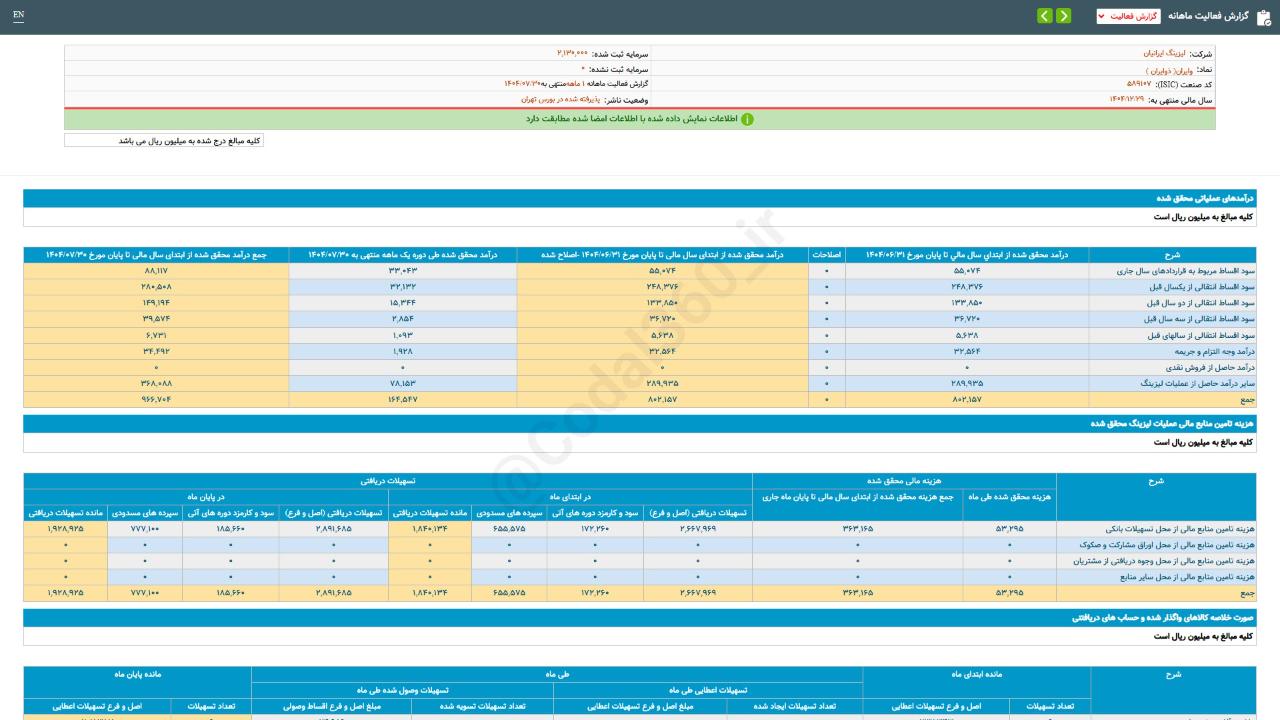 #گزارش_فعالیت_ماهانه #دوره_1_ماهه منتهی به 14040730 شرکت #لیزینگ_ایرانیان
