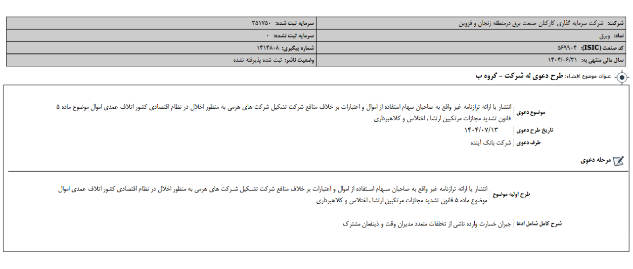 افشای اطلاعات بااهمیت،طرح دعوی له شرکت، گروه ب