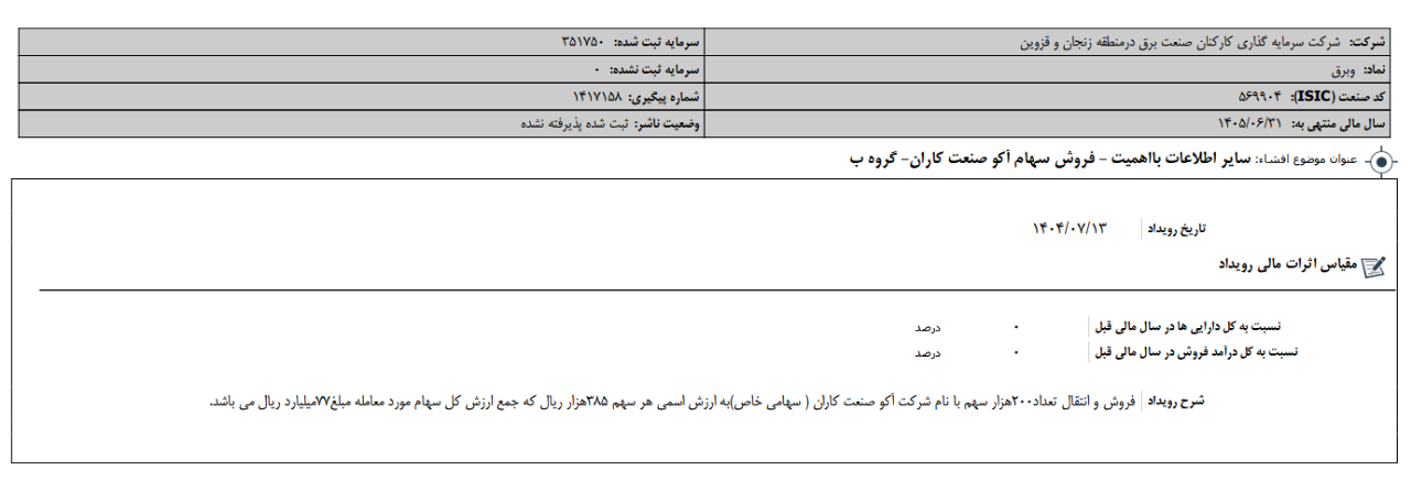 افشای اطلاعات بااهمیت،فروش سهام آکو صنعت کاران-گروه ب