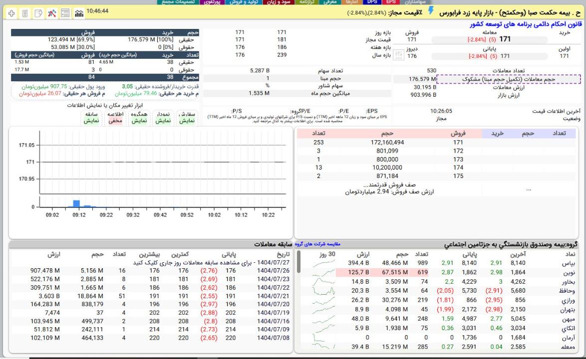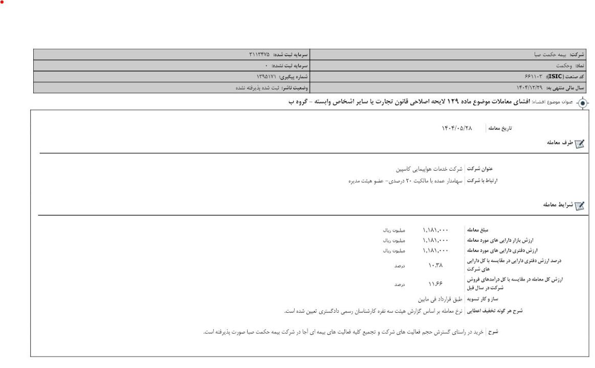 به اطلاع ميرساند؛ نماد معاملاتي حق تقدم خريد سهام شرکت بيمه حکمت صبا سهامي عام در نماد وحكمتح1 از طريق انجام حراج ناپيوسته بدون محدوديت دامنه نوسان قيمت و با اعمال يك مرحله پيش گشايش، امروز دوشنبه مورخ 14040631 آماده انجام معامله ميباشد. همچنين مهلت استفاده از حق تقدم خريد سهام شرکت مذکور تا روز دوشنبه مورخ 14040728 ميباشد