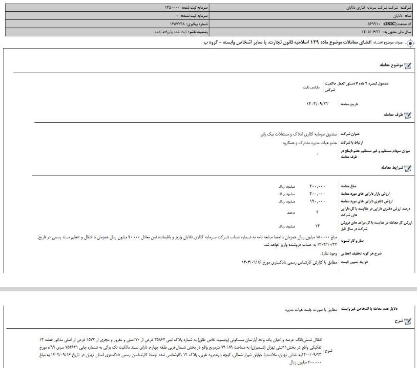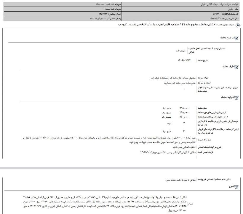 افشای اطلاعات بااهمیت،افشای معاملات موضوع ماده ۱۲۹ اصلاحیه قانون تجارت، یا سایر اشخاص وابسته - گروه ب