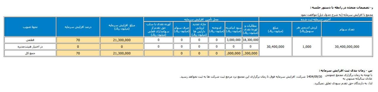 درصد افزایش سرمایه:70%