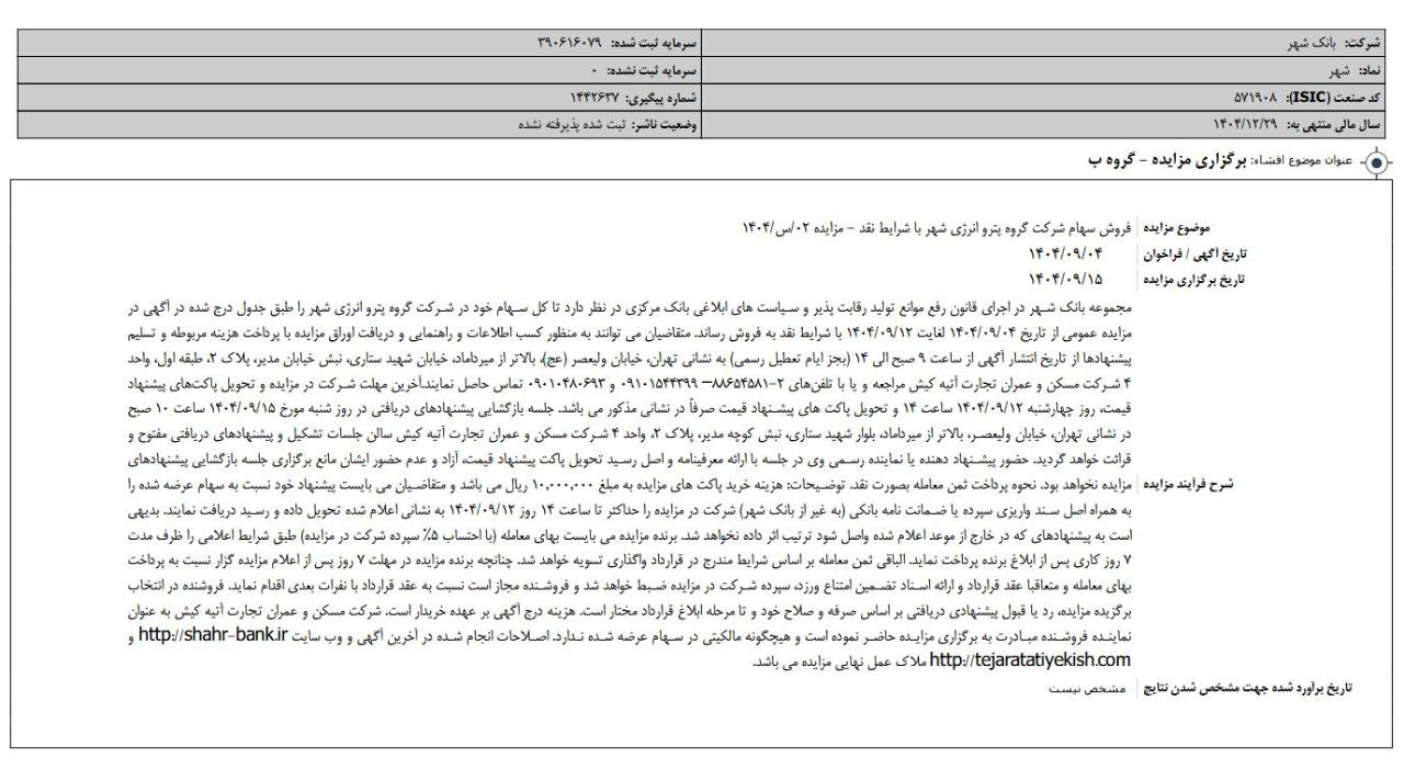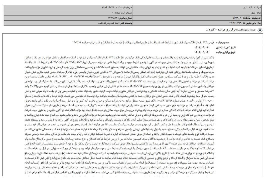 وضعیت سهامداری بانک شهر