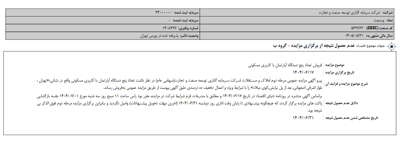 افشای اطلاعات بااهمیت، عدم حصول نتیجه از برگزاری مزایده، گروه ب
