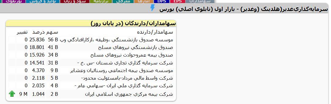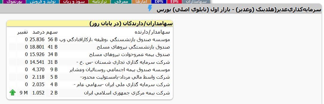 خریدار 9 میلیون سهم #وغدیر در معامله بلوکی روز 5 آذرماه شركت بيمه مركزي جمهوري اسلامي ايران بود