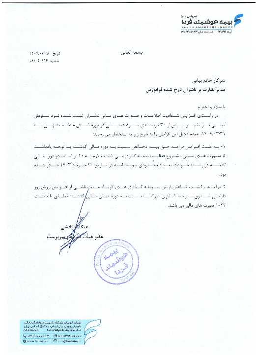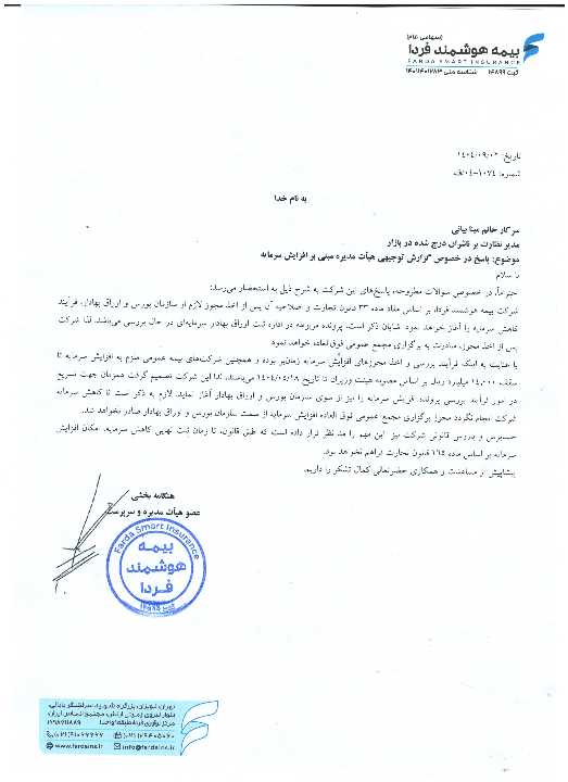 در پاسخ به نامه ی مدیریت نظارت بر ناشران درج شده در بازار فرابورس در خصوص گزارش توجیهی هیات مدیره مبنی بر #افزایش_سرمایه