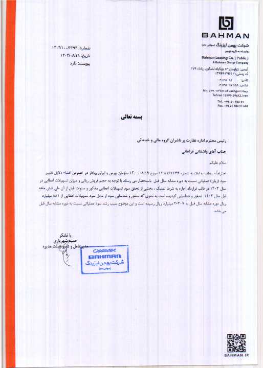 #ولبهمن با عنایت به مجوز افزایش سرمایه با شماره مجوزDPM-IOP-04A-141 مورخ 14040912 از کلیه سهامداران ، وکیل یا قائم مقام قانونی صاحب سهم و همچنین نماینده یا نمایندگان اشخاص حقوقی دعوت میگردد تا در جلسه مجمع عمومی این شرکت که در ساعت 08:30 روز یکشنبه مورخ 14040930 در استان تهران ،شهر تهران به آدرس بزرگراه شهيد متوسليان جاده قديم کرج ، کيلومتر 16 ، سالن همايش شرکت بهمن موتور برگزار میگردد حضور بهم رسانند.