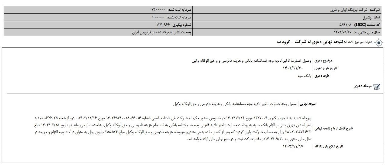 نتایج حاصل از فروش حق تقدم های استفاده نشده شرکت ليزينگ ايران و شرق - نماد: #ولشرق