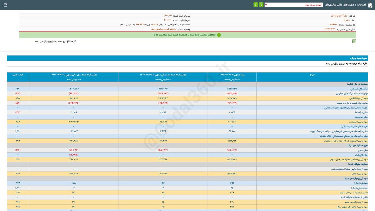 اطلاعات و #صورتهای_مالی_میاندورهای دوره 9 ماهه منتهی به 14040631 حسابرسی نشده شرکت #لیزینگ_ایران_و_شرق