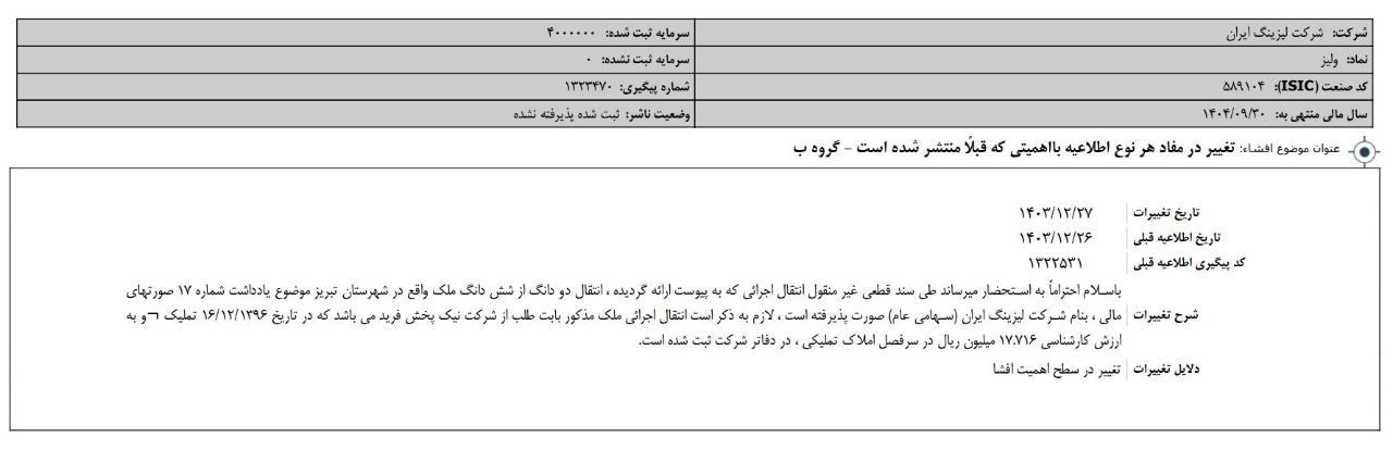در خصوص اطلاعات و صورتهای مالی میان دوره ای 3 ماهه منتهی به 1403.12.30 حسابرسی نشده