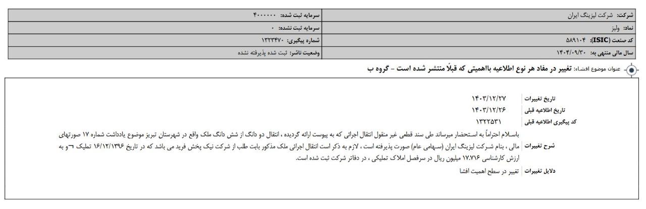 افشای اطلاعات بااهمیت، تغيير در مفاد هر نوع اطلاعيه بااهميتي كه قبلاً منتشر شده است - گروه ب