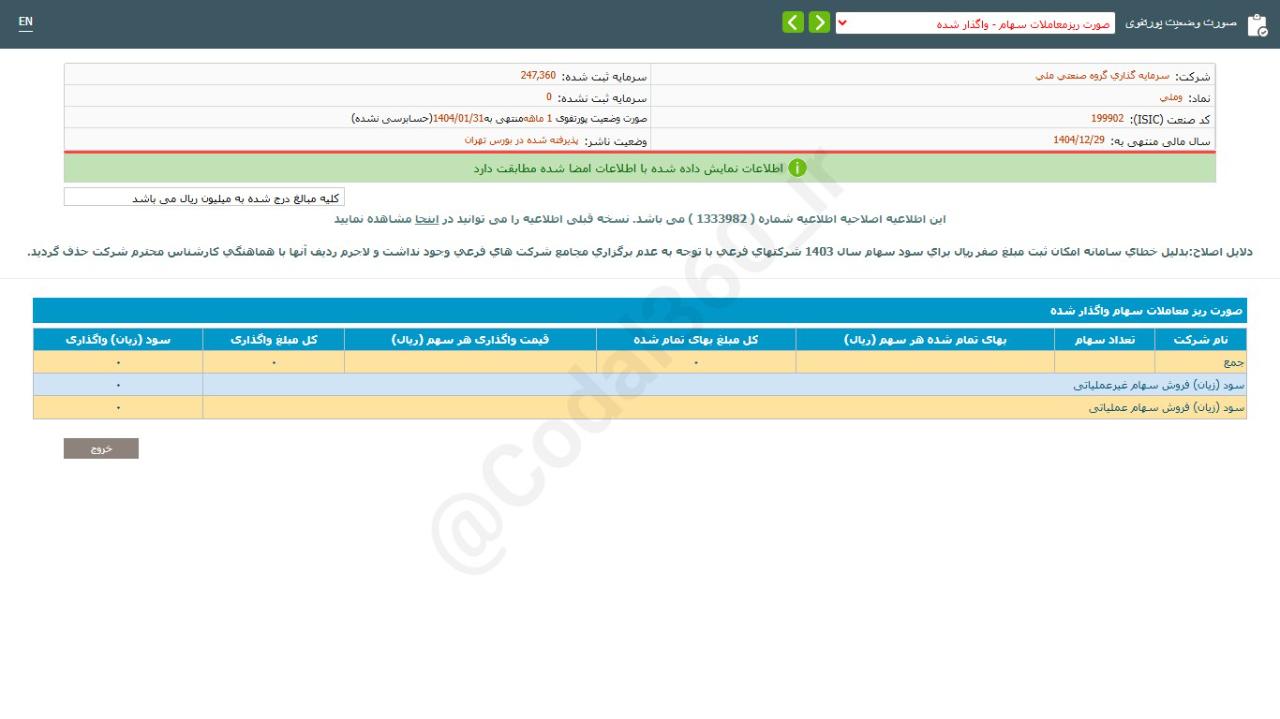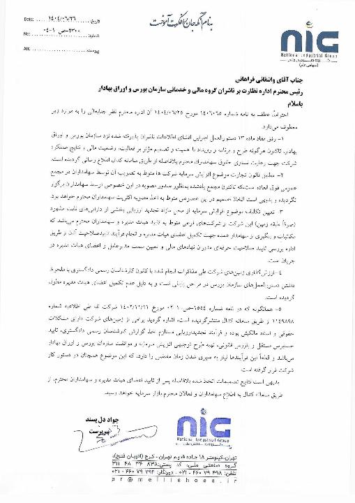در نهایت صورتهای مالی شرکت سرمایه گذاری گروه صنعتی ملی برای سال مالی منتهی به ۱۴۰۳۱۲۳۰ مورد تصویب قرار گرفت.