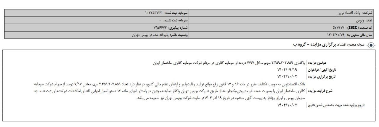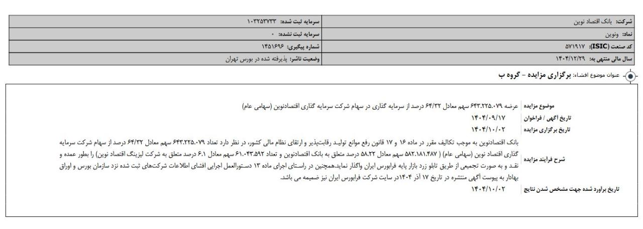 آگهی دعوت به مجمع عمومی فوق العاده جهت تصویب #افزایش_سرمایه #ونوین