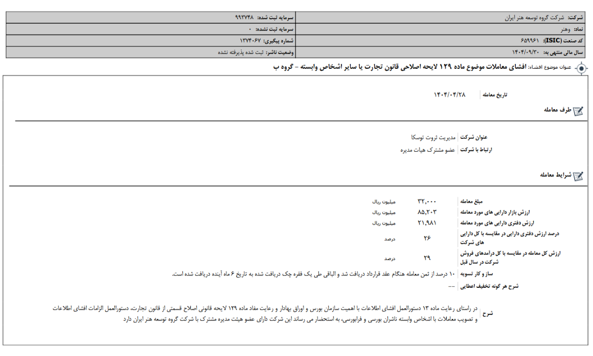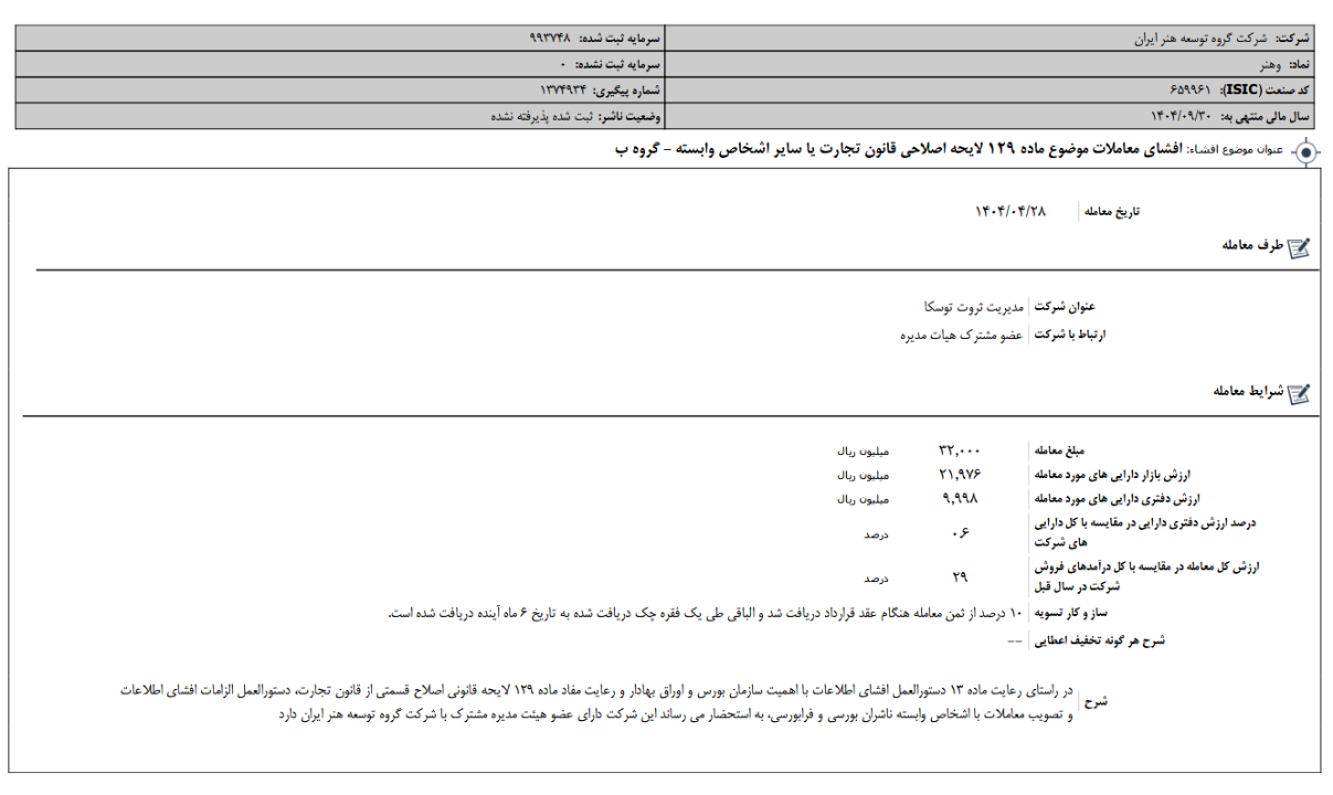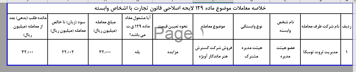 افشای اطلاعات بااهمیت، افشاي معاملات موضوع ماده 129 لایحه اصلاحی قانون تجارت یا ساير اشخاص وابسته - گروه ب