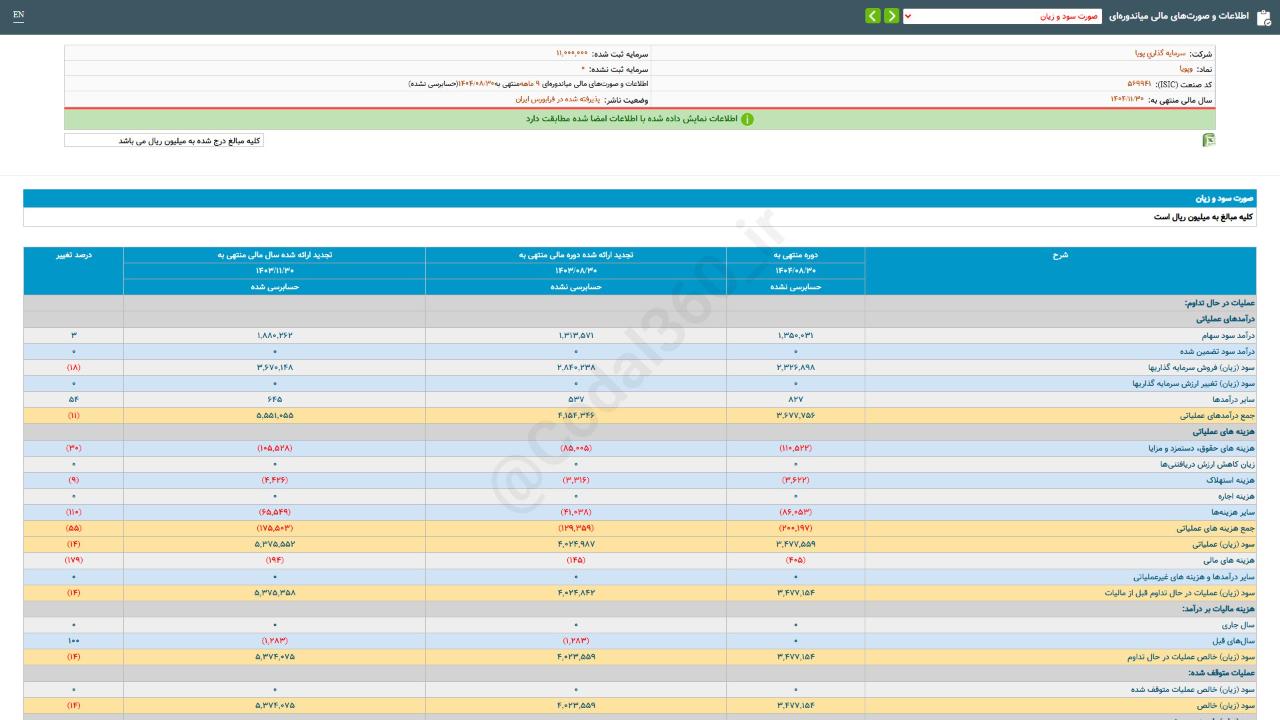 اطلاعات و #صورتهای_مالی_میاندورهای دوره 9 ماهه منتهی به 14040830 حسابرسی نشده شرکت #سرمایه_گذاری_پویا
