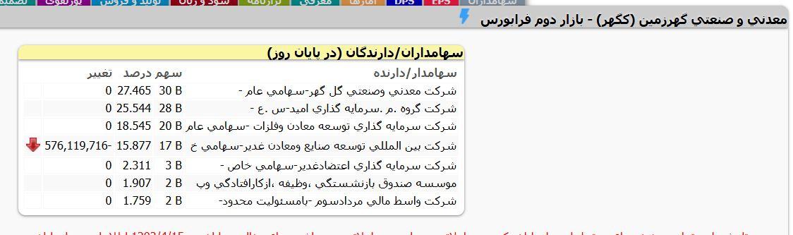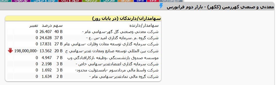 فروشنده #کگهر در معامله بلوکی دیروز 18 مردادماه شركت بين المللي توسعه صنايع ومعادن غدير بود.