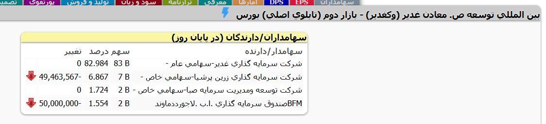 فروشنده 50 میلیون سهم #وکغدیر در معامله بلوکی دیروز 12 آبان ماه شركت سرمايه گذاري زرين پرشيا بود