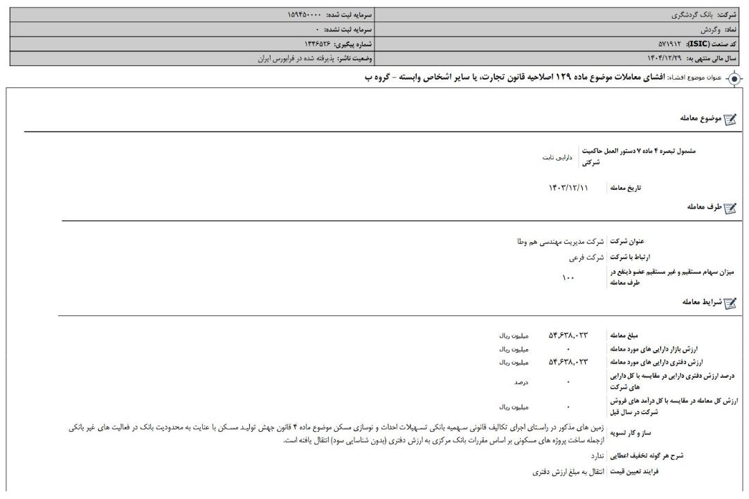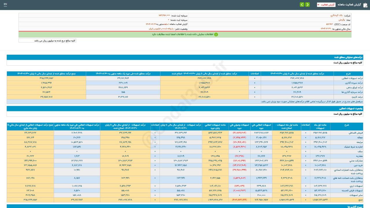 #گزارش_فعالیت_ماهانه #دوره_1_ماهه منتهی به 14040830 شرکت #بانک_گردشگری