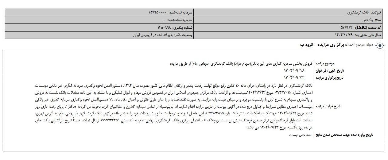 افشای اطلاعات بااهمیت،برگزاری مزایده-گروه ب