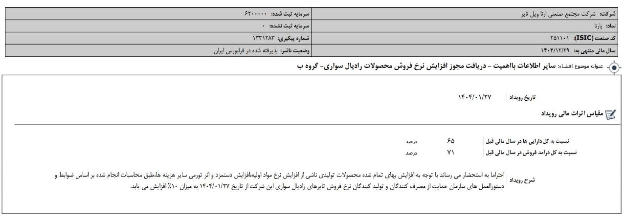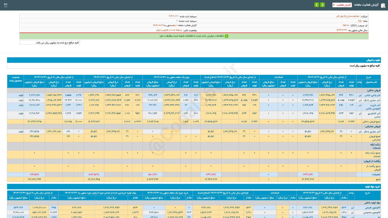 #گزارش_فعالیت_ماهانه #دوره_1_ماهه منتهی به 14040730 شرکت #مجتمع_صنعتی_ارتا_ویل_تایر