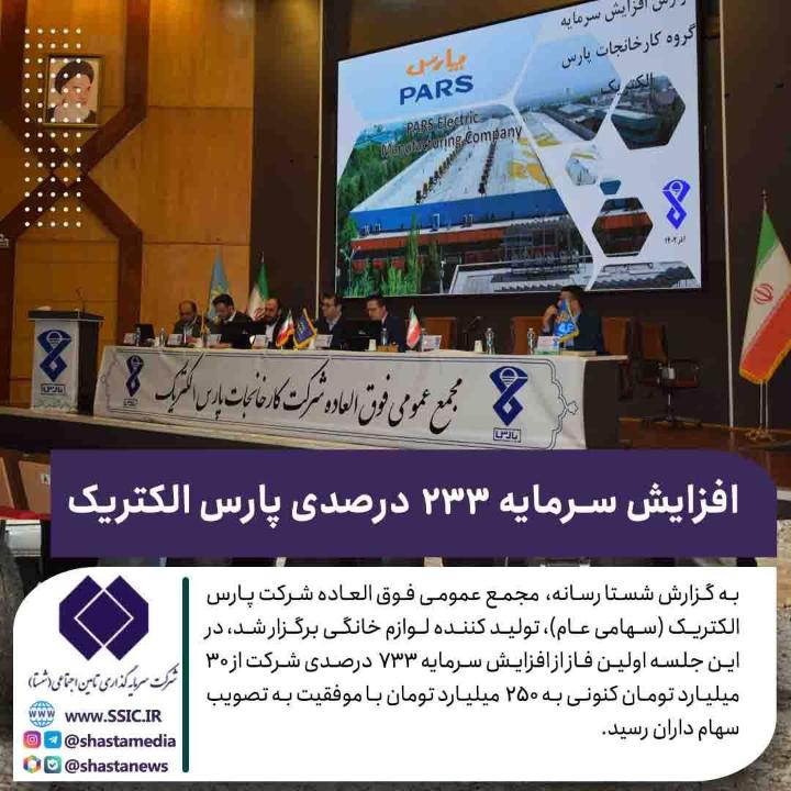 ✅ افزایش سرمایه ۲۳۳ درصدی پارس الکتریک